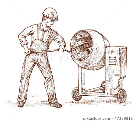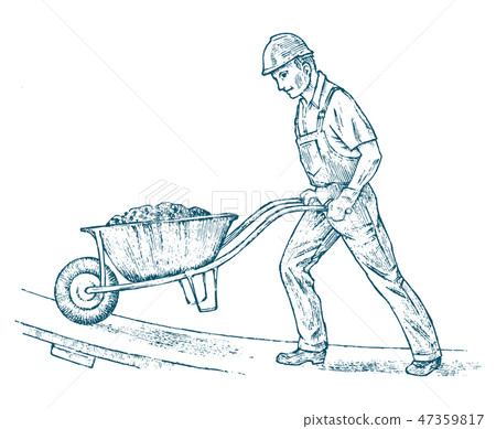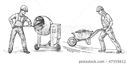 Vector Drawing Roadworks Construction Worker With Jackhammer